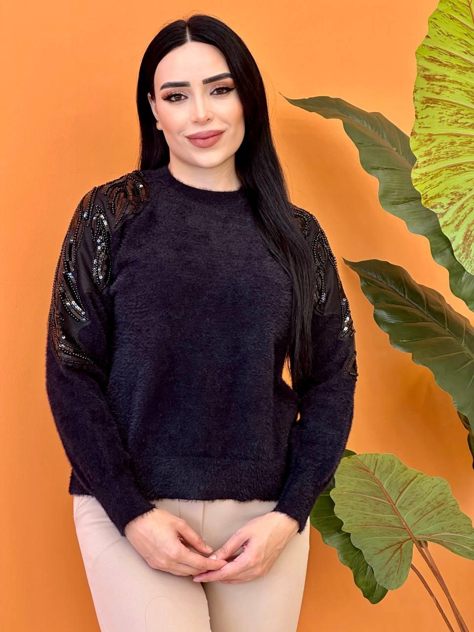 Angora Omuz Boncuklu Kazak 140299 T-25 Siyah