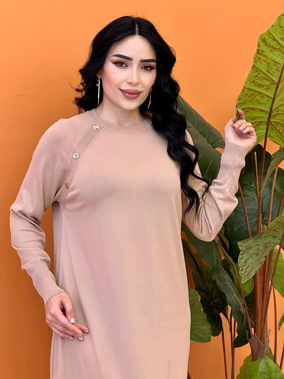 Düğmeli Reklan Kol Elbise 140307 T-25 Bej