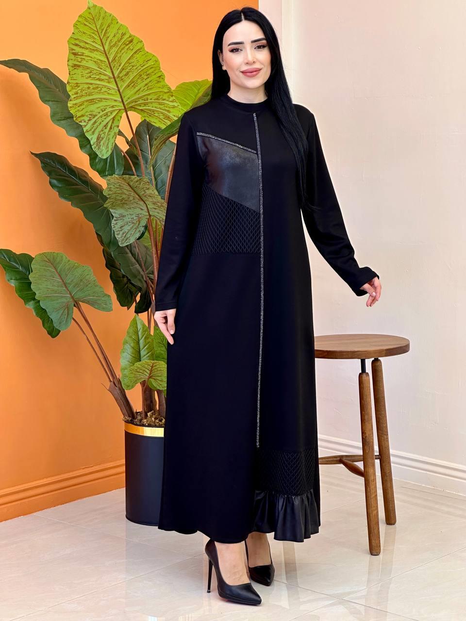 File Deri Detay Oyşo Elbise 1110 T-25 Siyah (P-05670)