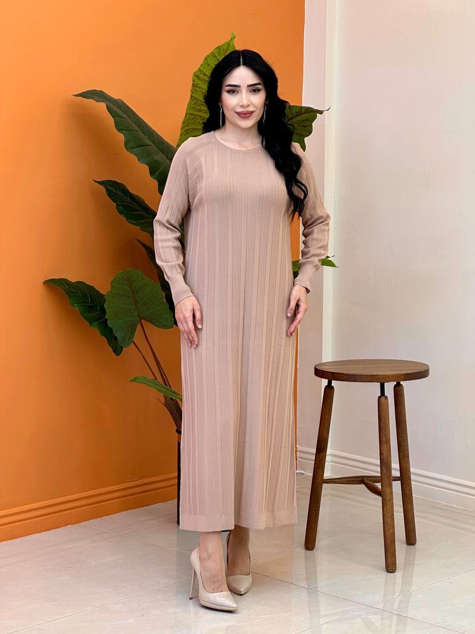 Fitilli Bisiklet Yaka Elbise 140309 T-25 Bej