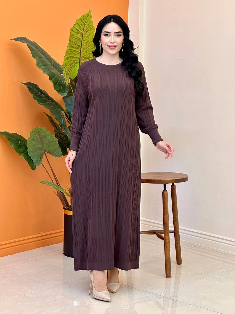 Fitilli Bisiklet Yaka Elbise 140309 T-25 Kahverengi (P-05646)