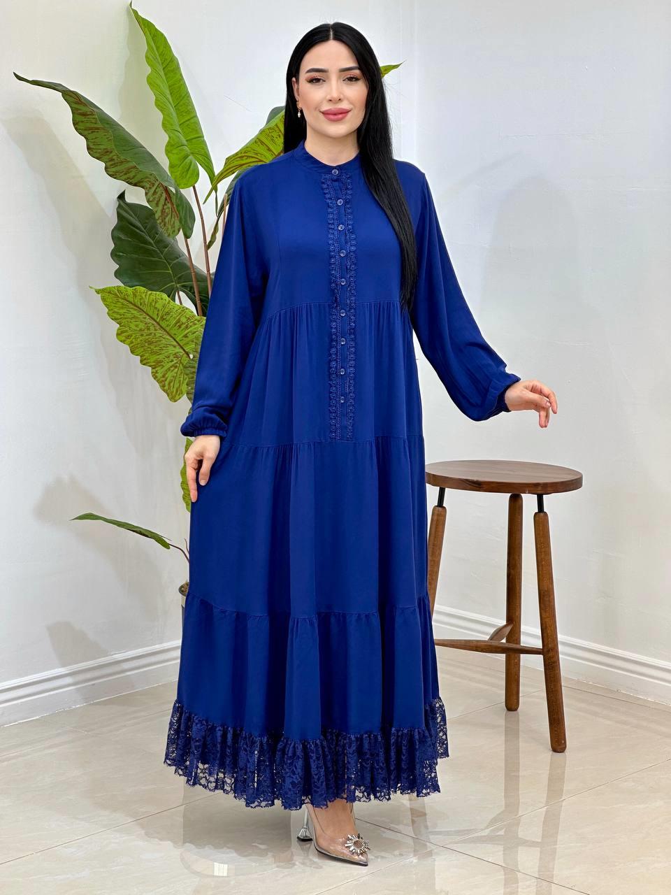 Güpür Detay Düğmeli Elbise 4423 T-25 Lacivert (P-05601)
