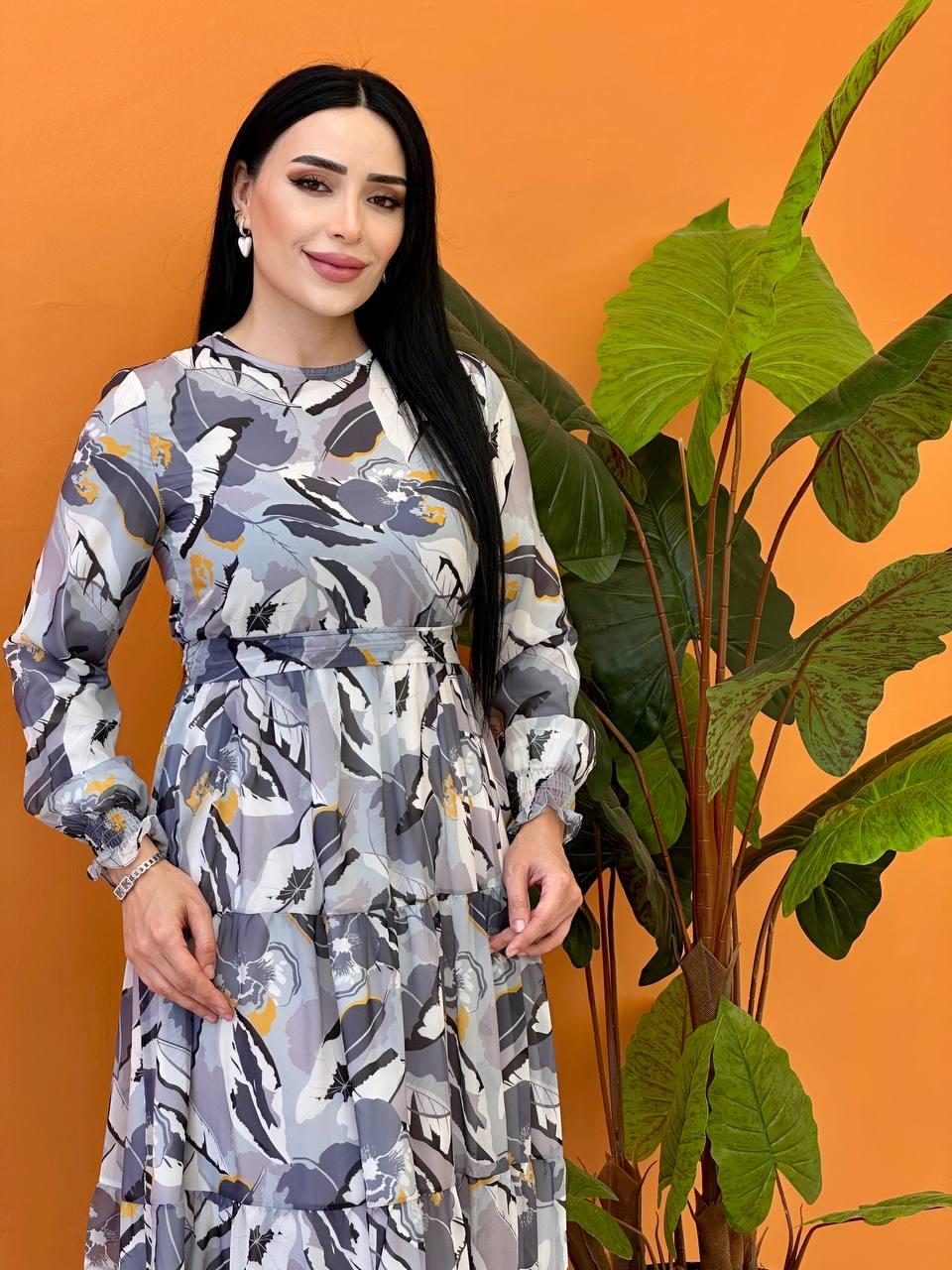 kol Lastik Desenli Günlük Elbise 310 T-25 Gri (P-05595)