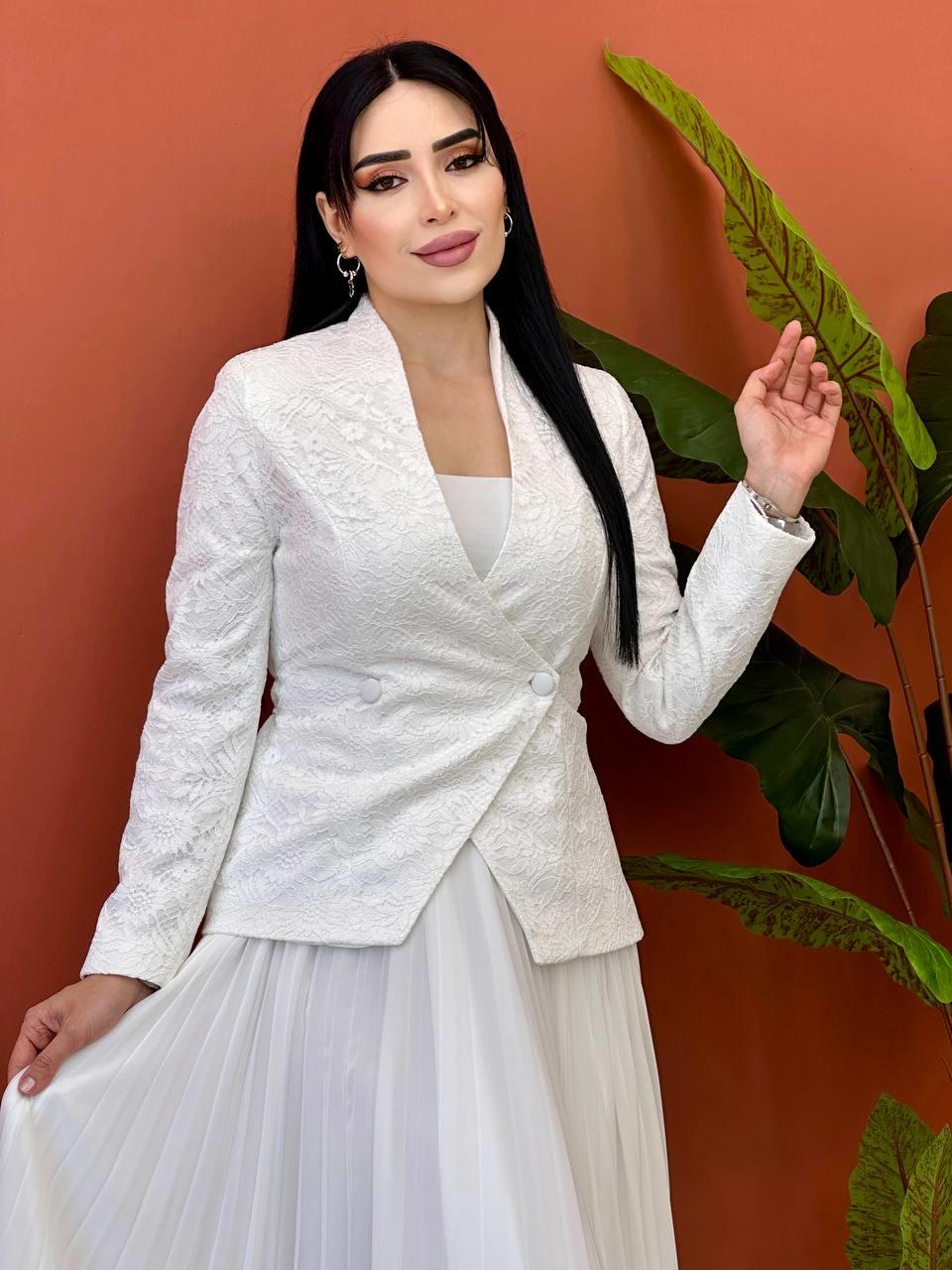 Kruvaze Güpür Ceket Etekli Takım 5345 T-25 Beyaz