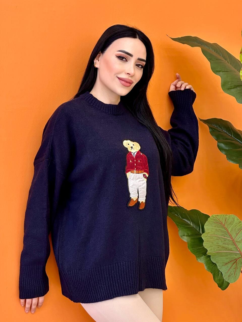 Şardonlu Ayıcık Desenli Kazak 7646 T-25 Lacivert (P-05671)