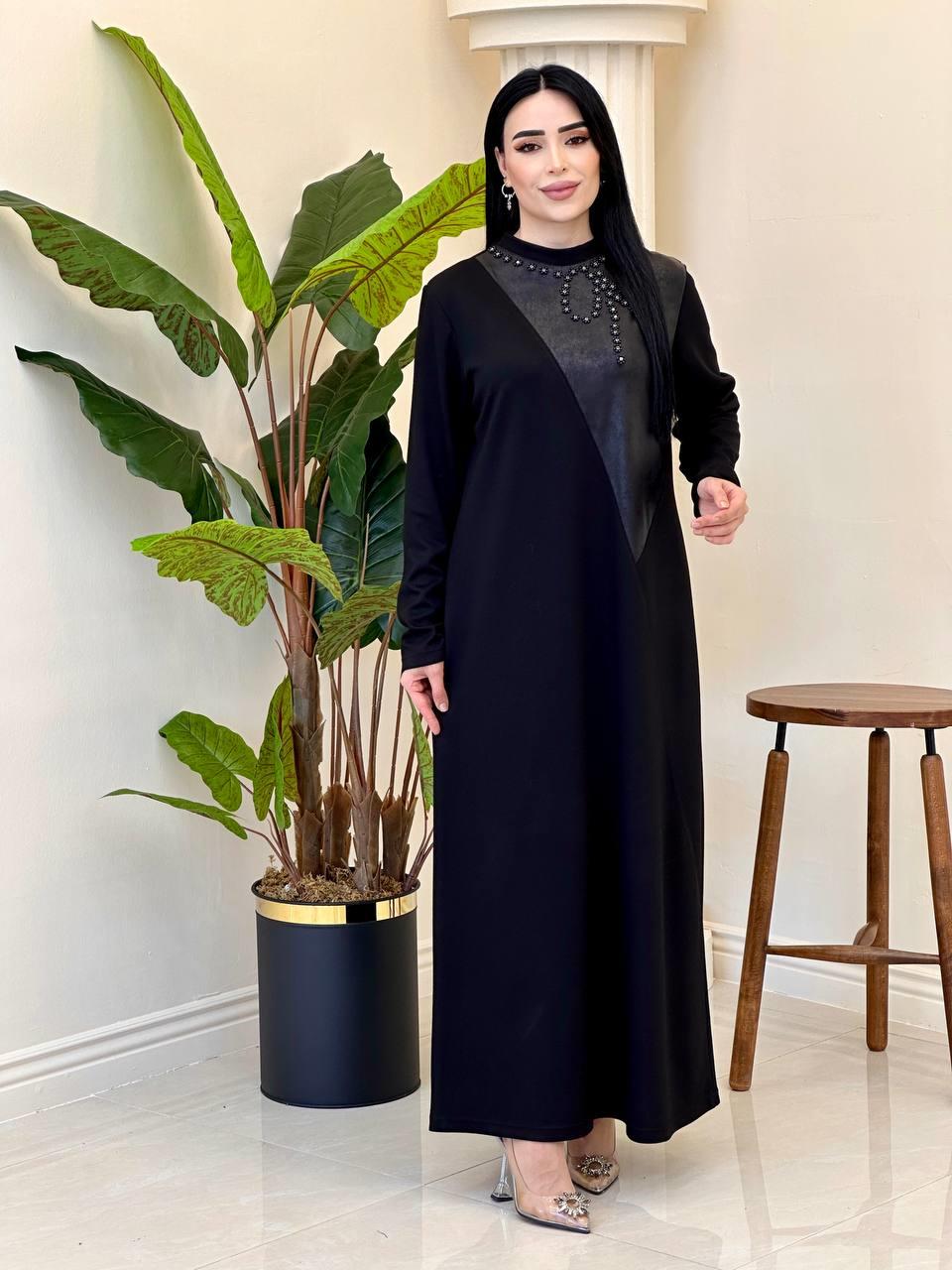 Yaka Fiyonk İşleme Oyşo Elbise 1109 T-25 Siyah (P-05703)